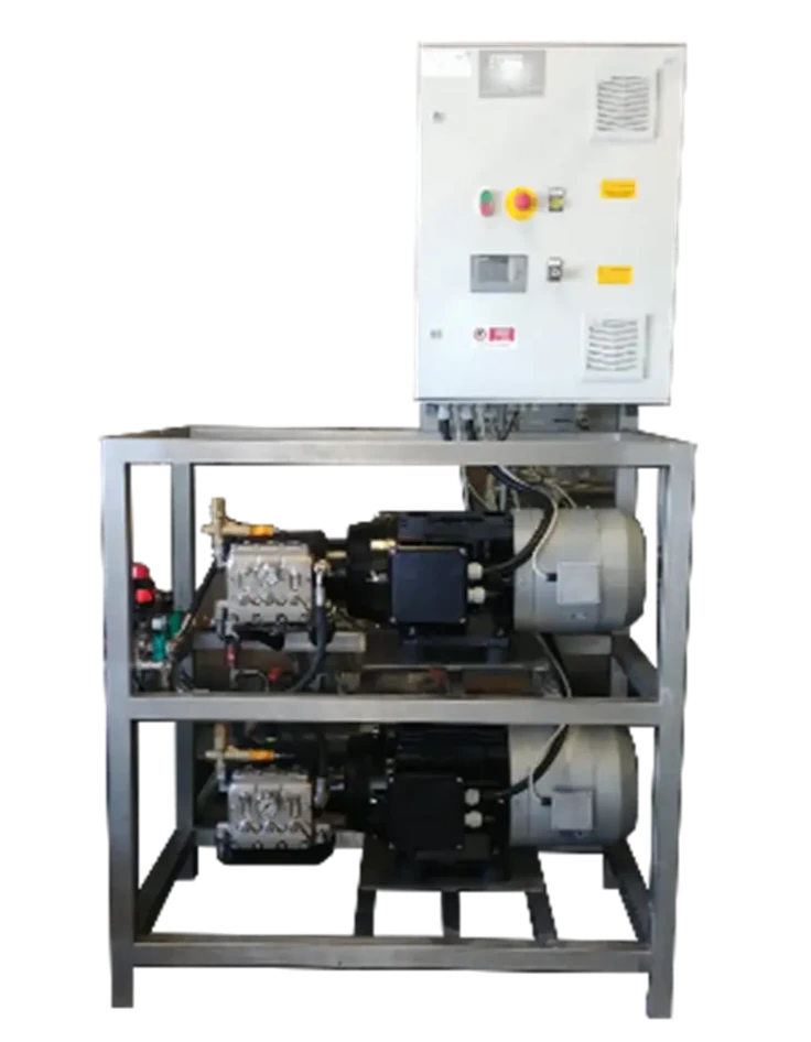 Gruppo pompa alta pressione a pistoni con pressione di 400 bar 60 lt/min. a normativa ATEX completamente in acciaio inossidabile.